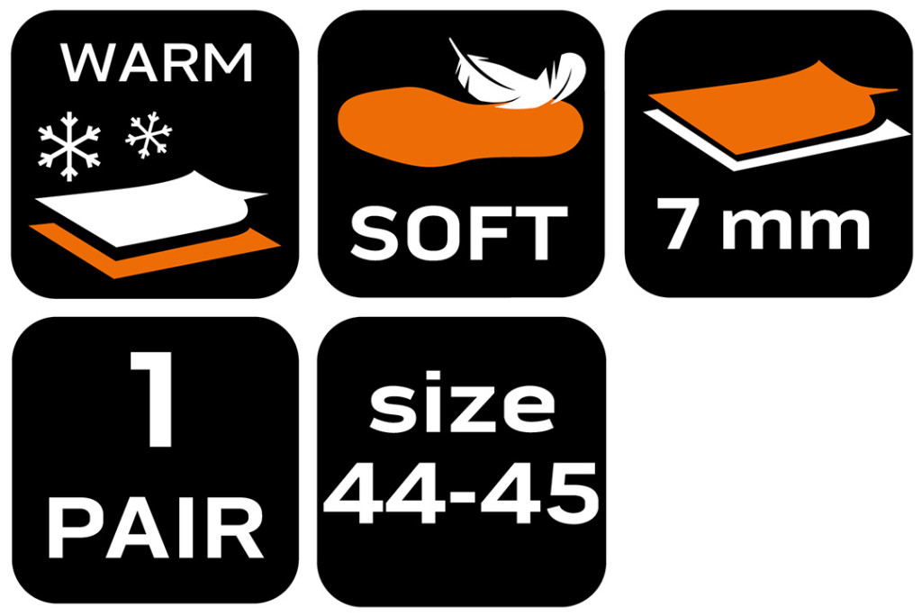 NEO 82-343 Talpbetét, filc, hőszigetelt. Filcből készült, praktikus cipőtalpbetét, amely védi a lábat a hidegtől és a nedvességtől. A talpbetét enyhíti a láb talajra gyakorolt nyomását és csökkenti a láb túlzott fáradtságát. Alkalmas munka- és kültéri cipőkhöz, valamint mindennapi használatra.