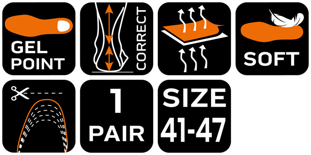 Talpbetét, zselés sarokvédő betét, talpboltozat merevítés, nedvességelvezető perforáció, univ. méret, 41-47