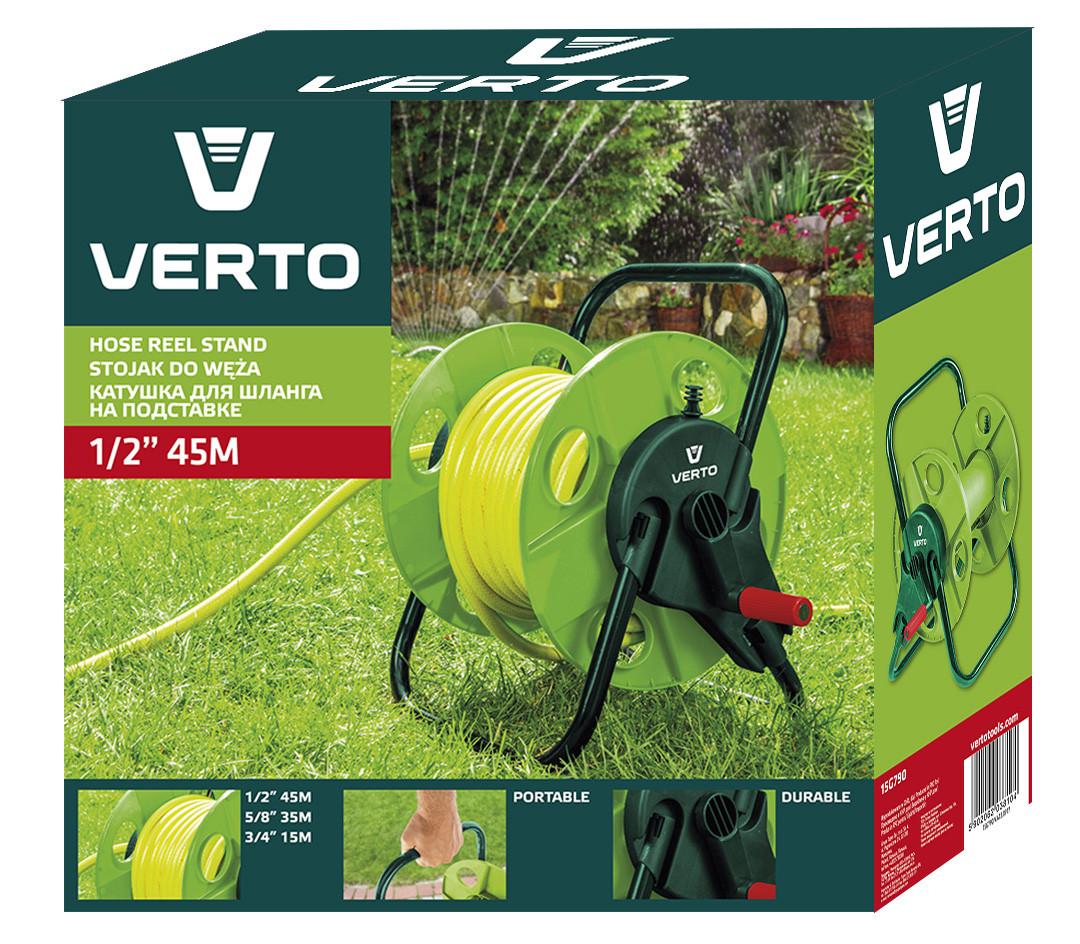 A VERTO 15G790-es kerti tömlődob ideális megoldás lehet a kerti tömlő kényelmes tárolására és szállítására. A dob tartós anyagból készül, így hosszú élettartammal rendelkezik és megbízhatóan szolgálja Önt az öntözés során. A kerti tömlő dob alkalmas körülbelül 45 méter hosszú 1/2"-os tömlő, körülbelül 35 méter hosszú 5/8"-os tömlő, valamint körülbelül 15 méter hosszú 3/4"-os tömlő tárolására. Ezáltal lehetősége van különböző méretű tömlők használatára a kertjében, attól függően, hogy melyik részt szeretné öntözni. A kerti tömlő dob könnyen hordozható és szállítható, így rugalmasan alkalmazkodhat az Ön öntözési igényeihez, és könnyedén kezelheti a kerti munkákat. A tartós műanyagból készült kivitelezés biztosítja, hogy a tömlődob hosszú távon is megbízhatóan működjön, és megfeleljen az elvárásoknak.
