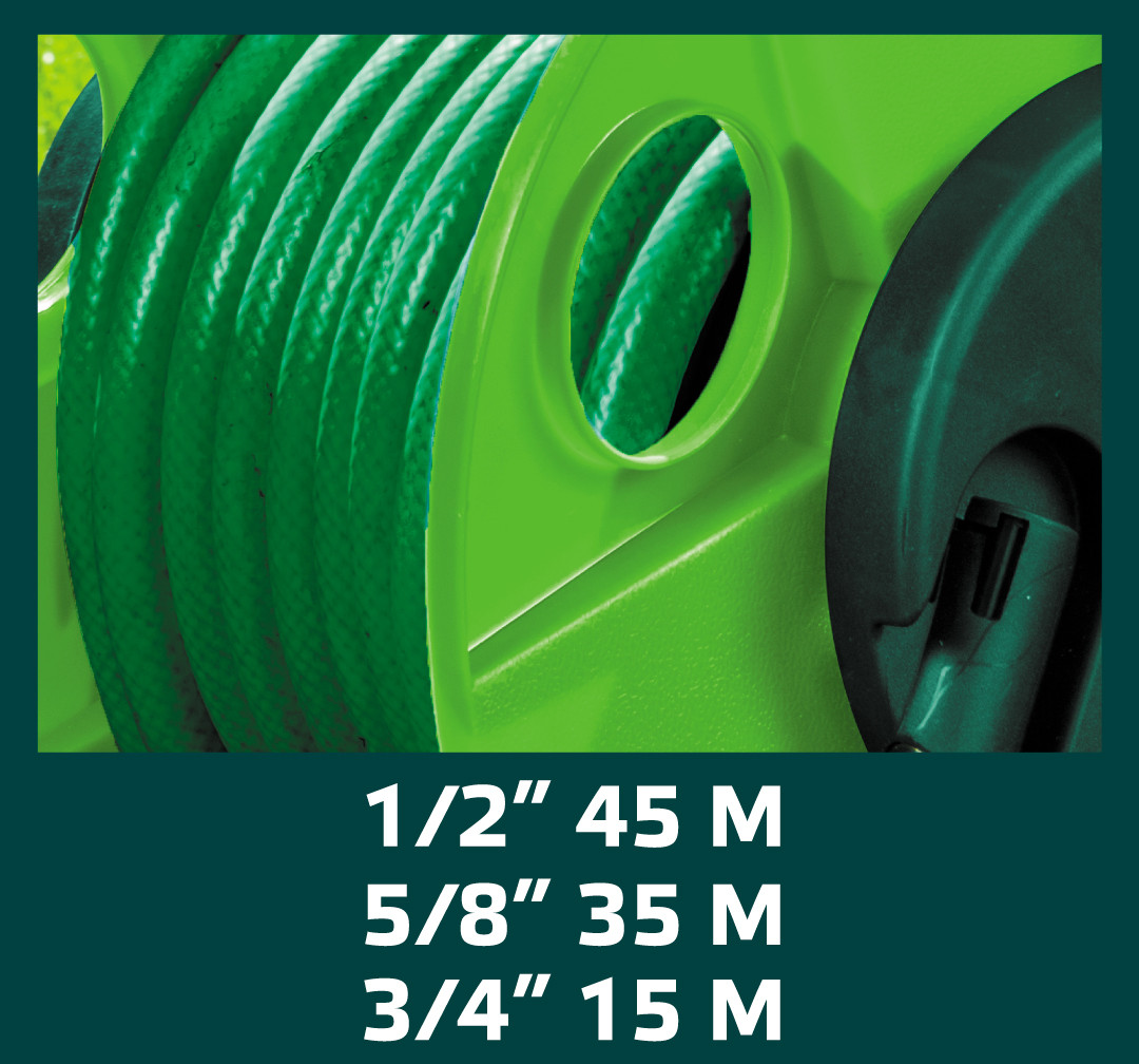 Tömlődob tömlőméret: 1/2" max45m, 5/8" max35 m