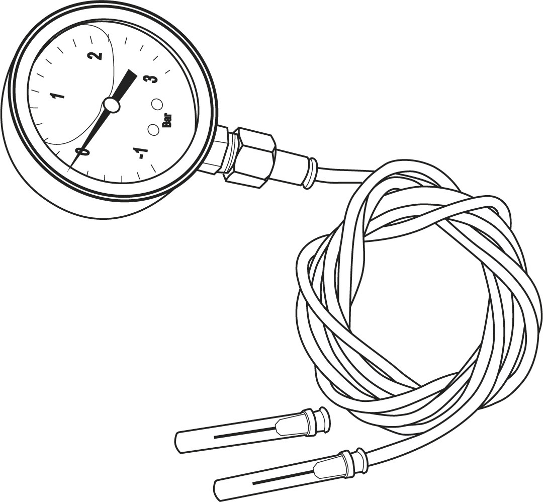 A készlet tartalma: manométer, flexibilis tömlő, 2 db vég