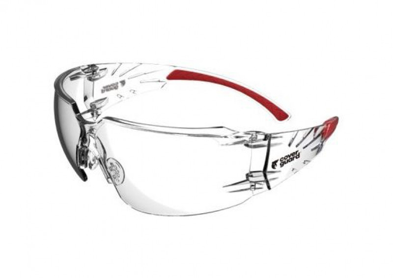 két komponensû(polikarbonát és TPR),piros színû, rugalmas ésönbeállító szár, szélesszellõzõ felülettel keskeny formai kialakítás,széles oldalvédelemmel puha és állítható,csúszásbiztos orrnyereg könnyû: 22 g hosszúideig viselhetõ EN 166:2001, EN 170:2003 2C-1,2 1FT