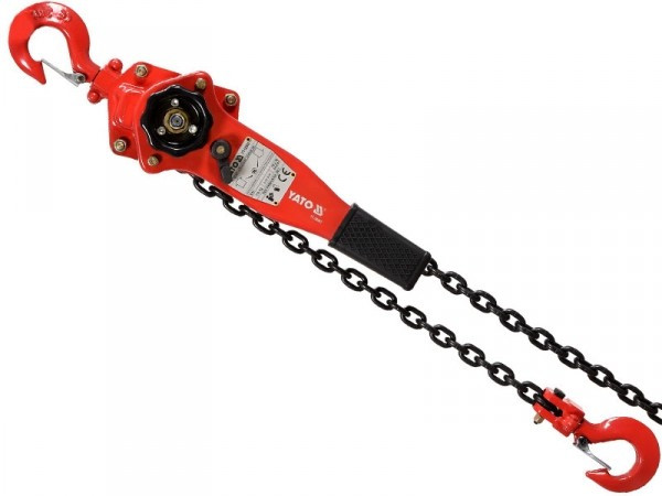 ÚJ SOROZAT YATO LÁNCEMELŐK A Yato láncemelők, ipari felhasználásra készültek gyártó vállalatok, szállító vállalatok, hajógyárak, bányák és raktárak számára. Lehetővé teszik a nehéz teheremelést, szerkezeti elemek, gépek alapjainak emelését, valamint a kötelek előfeszítését és a nehéz terhek hatékony rögzítését. Az emelők speciális kialakítású horoggal rendelkeznek a munkavédelem növelése érdekében. Az emelési magasság 1500 mm. Az új emelő sorozat kompakt, minden acélból, korrózió ellen védett kivitelben készül. Pontos karos mechanizmus, minimalizálja az emeléshez szükséges erőt. A teljes termékpaletta 750 kg-tól - 9 tonnáig terjedő teherbírással rendelkező karos emelőket tartalmaz... Részletes adatok a berendezés műszaki dokumentációjában találhatók. Az emelőket szerviz fedezi a garancia ideje alatt és után is. A 2000 kg-nál nagyobb teherbírású kézi emelőket be kell jelenteni és elfogadnia kell a Műszaki Ellenőrző Hivatalnak (UDT). Nehéz teher emelésére, feszítésre, pozícionálásra. Használat előtt kérjük, olvassa el a használati utasítást. Tekintse meg a használati utasítást