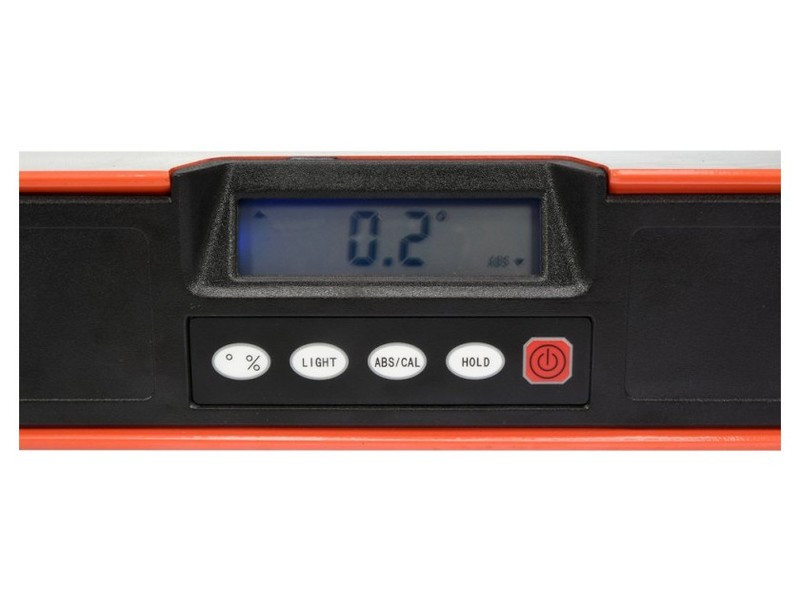 Alumínium elektronikus szintező beépített lézerrel, mely segítségével a mérési adatokat akár 20 m távolságra is át lehet vinni. Pontos jelölést biztosít függőleges és vízszintes vonalakhoz. A mérési paramétereket egy nagy, világító LCD képernyőn lehet leolvasni. Regisztrálhatjuk és megőrizhetjük azokat az eszköz memóriájában. A felhasználó által vizsgált vagy beállított szög tovább vihető a homlokban elhelyezett lézer szintezőkkel. Lehetővé teszi pont, folyamatos vonal vagy jobb szögben metsző vonal átvitelét. A beépített két vízmértéknek köszönhetően hagyományos módon is mérhetünk. Rendelkezik a mérési eredmény megőrzésének funkciójával és hangjelzést ad a feltételezett paraméterek eléréséről. 1,5 V-os elemekkel működik. Használati figyelmeztetések: Óvatosan: lézersugárzás. Ne nézzen bele a sugarába. 2-es osztályú lézereszköz.