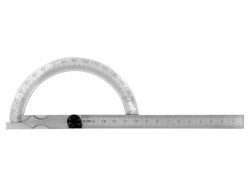 Szögjelző 120 x 150 mm magas széntartalmú acélból készült mérési tartomány 180° felbontás 1°. pontosság +/- 0,1° Számos műszaki területen végzett mérésekhez.