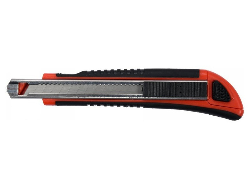 9mm-es többélű kés. kés minőségi ABS-ből készült testtel ráadásul csúszásgátló TPR bevonattal van ellátva, ezért biztos fogást és munkakényelmet biztosít fém útmutató automata pengével cserélhető rendszerrel a vágókésnek három pengéje van SK5 acélból, amelyek nagyon jó vágási paramétereket és hosszú élettartamot biztosítanak Használati figyelmeztetések: A kézi szerszámok használata veszélyes lehet! Mindig viseljen személyes védőfelszerelést munka közben. Csak megfelelő, sérülésmentes szerszámokat használjon. Válassza ki a szerszám típusát és méretét a tervezett felhasználásnak megfelelően. Ne terhelje túl a szerszámokat. Tartsa a szerszámokat távol a gyermekektől. Használja megfelelően a szerszámokat.