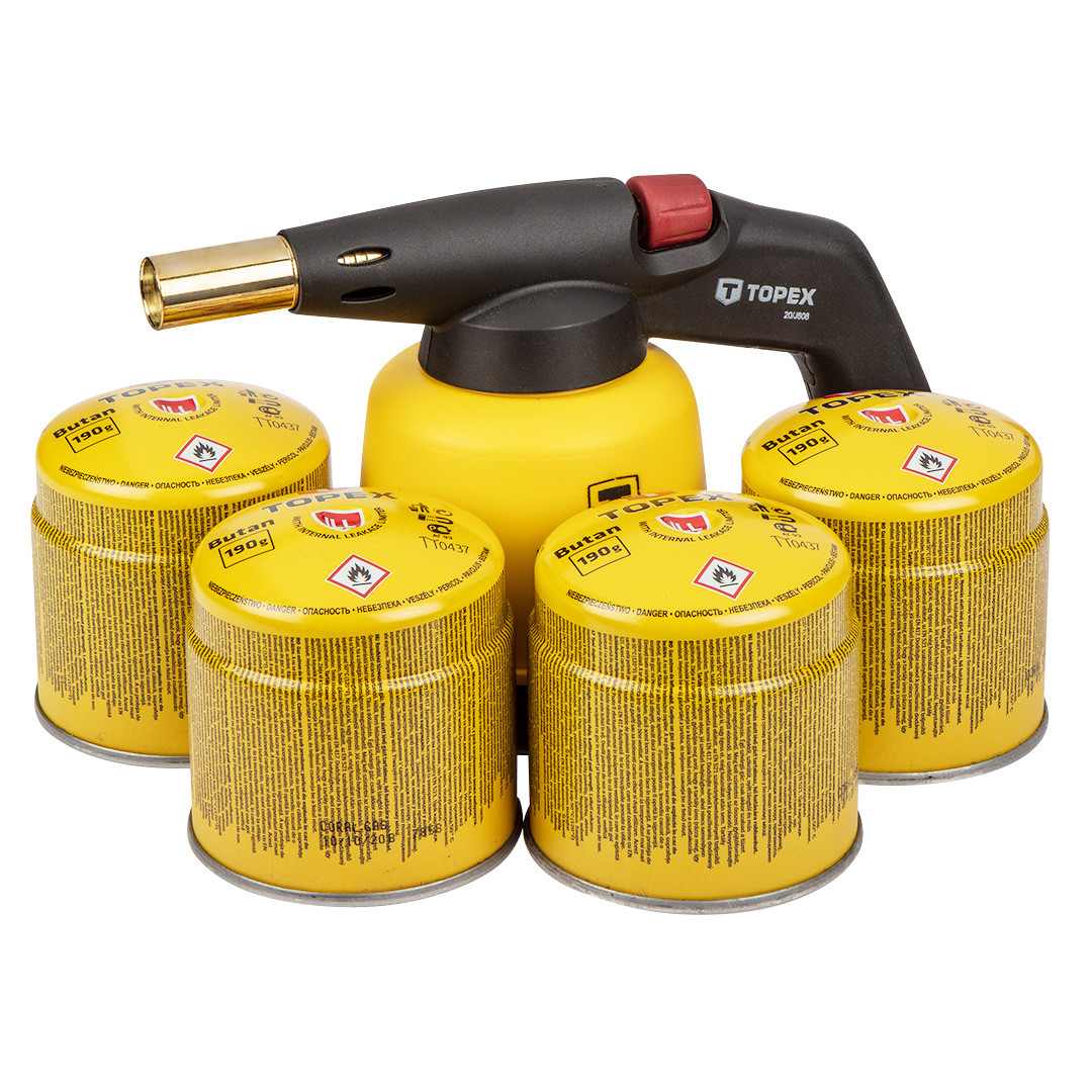 A TOPEX Gáz forrasztólámpa műanyagból készül. A lámpa 190 g-os propán-bután patronnal működik. A lánghőmérséklet 1350°C. A termék lágszabályozóval rendelkezik. Gázfogyaztás 180g/h, hőteljesítmény 1,9kW. Lehetővé teszi cink, alumínium, ezüst forrasztását, csövek, lapok formálását vagy hajlítását, stb. Ezen túlmenően a lámpa használható festék eltávolítására, grill begyújtására, csavarok fellazítására és csövek felolvasztására. TOPEX 4 db 190 g-os propán-bután patron (cikkszám: 44E150). A kivételes gáz elzáró rendszer növeli a használat biztonságát. A patron univerzálisan használható, pl. forrasztó lámpához vagy kemping gázfőzőhöz. A TOPEX márka ezermestereknek készült.