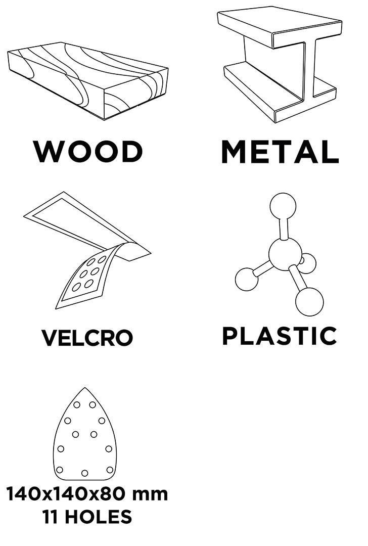 Csiszolópapír tépőzáras deltacsiszolóhoz 140x140x80mm, K80, 11 lyukas, 5db, min. rendelés: 5cs
