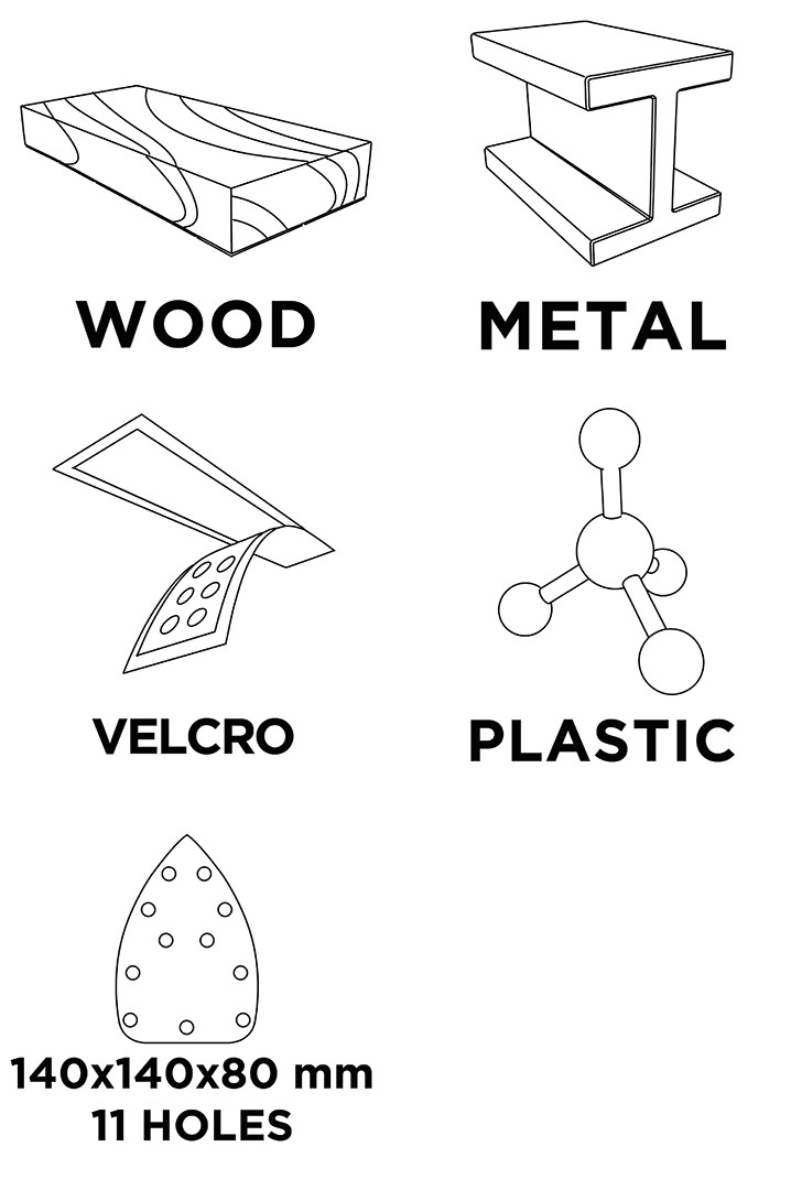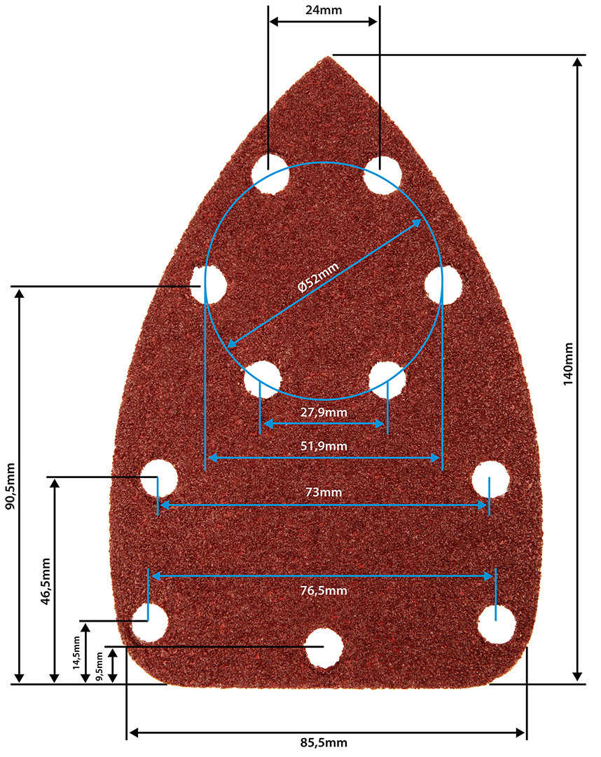 Csiszolópapír tépőzáras deltacsiszolóhoz 140x140x80mm, K100, 11 lyukas, 5db, min. rendelés: 5cs