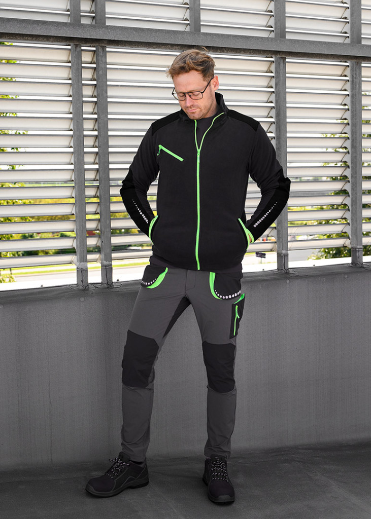 PREMIUM munka fleece, fekete, Cordura megerősítésekkel, XXL méret 81-507-XXL a NEO TOOLS-tól egy 100% poliészterből készült ruhadarab, 300 g/m2 súlyú. Cordura megerősítésekkel rendelkezik a vállakon és az ujjakon. Az ujjakon és a háton további fényvisszaverő nyomtatás, valamint a trendeknek megfelelő neonszínű cipzárak vagy ujj- és zsebszegélyek - vonzzák a tekintetet erre az érdekes dizájnra. A NEO TOOLS work fleece profilozott ujjakkal és bordázott mandzsettával rendelkezik, NEO fényvisszaverő nyomtatással. A 3 cipzáras zsebben számos apróság elfér, a belső névtábla pedig segít a személyre szabásban. A CE tanúsítvánnyal rendelkező és az EN ISO 13688:2013 szabványnak megfelelő ruhadarab egyedi, egyedi kialakítású, amellyel kitűnhet a munkahelyén és azon kívül is.