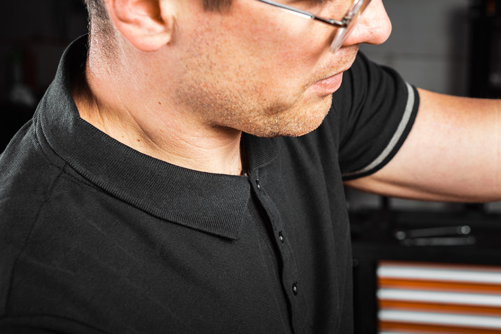 Munkavédelmi póló, galléros, Denim, fekete, pique, 100% pamut, 196g/m2, M