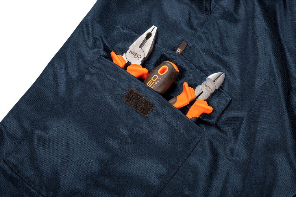 Kantáros munkásnadrág, lélegző, 240gsm, polyester+pamut, tengerészkék, fényvisszaverő csíkokkal, S