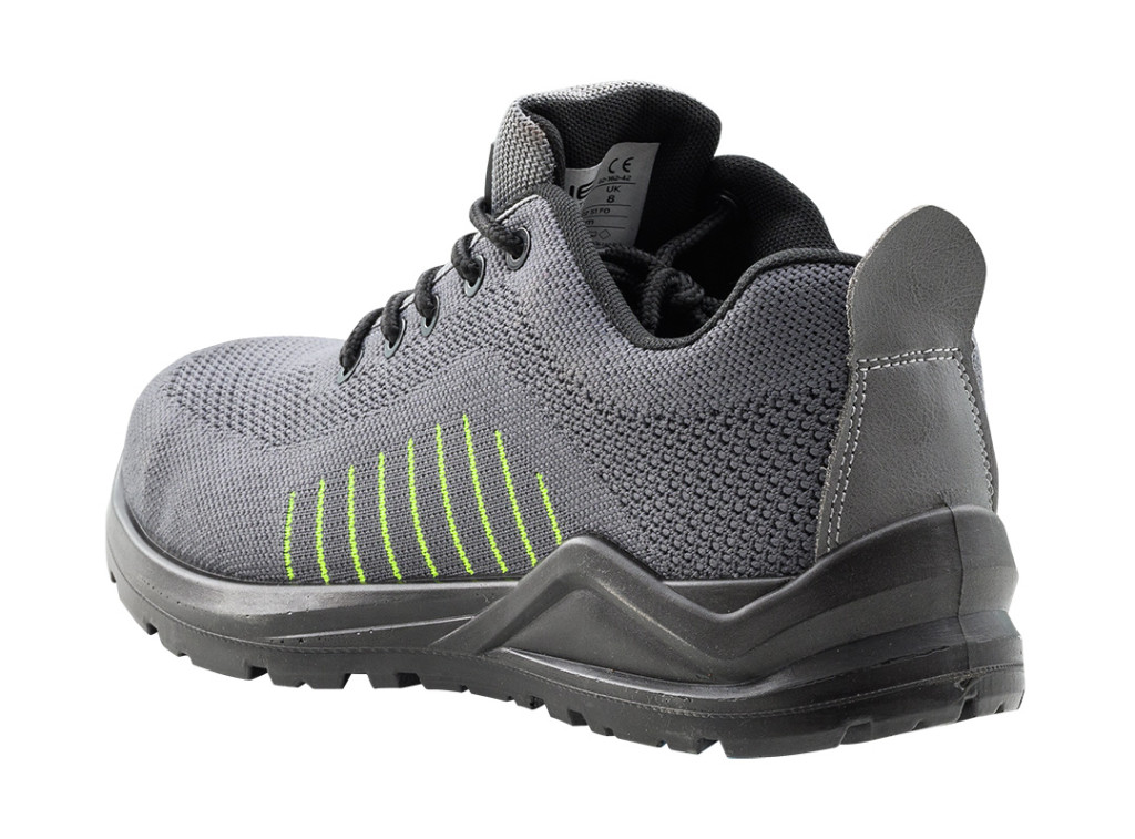 NEO 82-162 Munkavédelmi cipő, S1 FO, textil felsőrész, acélbetét, csúszásmentes talp. S1 FO védőkategóriájú lábbeli, amelyet 200J energiájú ütésekkel szembeni védelmet nyújtó, olajokkal, benzinnel és más szerves oldószerekkel szembeni ellenálló képesség jellemez. A NEO TOOLS munkacipő robusztus acél orrmerevítéssel, flyknit kötött felsőrésszel és kötött "hálós" béléssel rendelkeznek. A cipő PU/PU talppal és EVA habszivacs talpbetéttel is fel van szerelve. A fém lábfejvédő védi a lábat a sérülésektől. A NEO TOOLS flyknit típusú munkacipő felsőrésze egyetlen anyagból készül, ami hozzájárul a könnyű felépítéshez és a lábbeli nagyon jó illeszkedéséhez a lábfejhez. A termék az EN ISO 20345 szabványnak megfelelően CE tanúsítvánnyal rendelkezik.