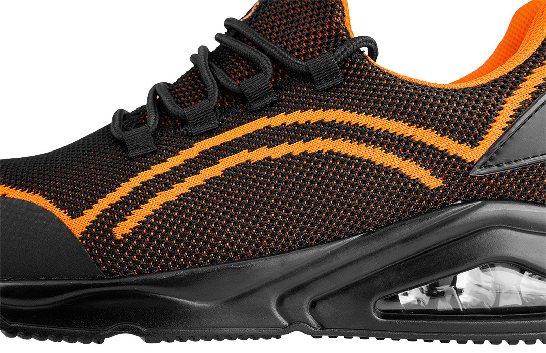 NEO 82-172 MUNKAVÉDELMI CIPŐ, S1 SR, FEKETE-NARANCS, NEO AIR, ACÉLBETÉTTEL, LÉGPÁRNÁS TALPPAL, FÉNYVISSZAVERŐ ELEMEKKEL. Acél talpbetéttel és fényvisszaverő elemekkel ellátva sokoldalúság és praktikusság jellemzi őket. Textil béléssel és felsőrésszel rendelkezik. A puha zónákkal ellátott HI-POLY habszivacs talpbetét megfelelő viselési kényelmet biztosít - akárcsak a légpárnával ellátott PU talp. A NEO TOOLS munkacipő az SR kategóriában készül, amelyet a glicerinnel bevont kerámialapra helyezett csúszásgátlás jellemez. A cipő védelmet nyújt a 200J energiájú ütésekkel szemben. Ez a NEO TOOLS sportos megjelenésű cipő, antisztatikus tulajdonságokkal rendelkezik, amely számos szakmai és mindennapi helyzetben hasznosnak bizonyul.