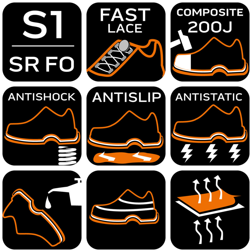 Munkavédelmi cipő S1 SR FO, bőr, kompozit orrmerevítő, tekerőgombos fűzőrendszer, 44, NEO TOOLS
