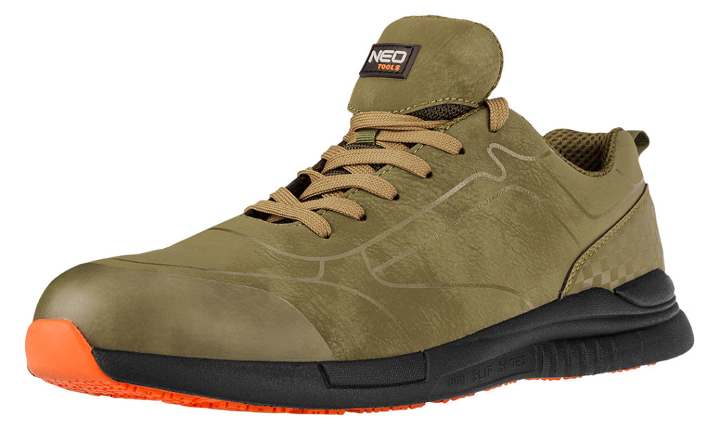 Az NEO TOOLS O2 SR FO munkacipő (modell: 82-741-40) kiemelkedő csúszásgátló tulajdonságokkal rendelkezik, ideális választás munkavégzéshez. Mikroszálas, vízlepergető felsőrésszel és kötött hálós béléssel kényelmet biztosít, PU/gumi talppal és HI-POLY habszivacs talpbetéttel. SLS bevonatú kerámia és glicerinnel bevont acél talajon is kiváló csúszásmentességet nyújt. A zárt sarokrész és az energiaelnyelő tulajdonságok növelik a biztonságot és a komfortot, elektrosztatikus ellenállással és vízállósággal egyaránt rendelkezik. Ellenáll az olajoknak, benzinnel és szerves oldószerekkel szemben. CE tanúsítvánnyal igazolt minőség.